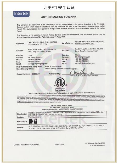 Our factory has passed ISO9001 and ISO14000 factory inspections . AndHolly Lite' s products are CE , ROHS , UL , ETL , DLC , FCC Certificate , and satisfies Title 24 requirement .